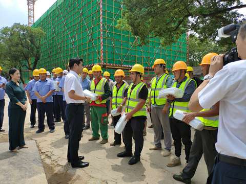 8月21日上午十一点,接近中午烈日炎炎,湘江集团党委书记、董事长张利刚一行来到芒果体育(中国)官方网站-登录入口承建的长沙科技创意园项目,现场看望慰问高温天气下依然坚守战斗在岗位上的广大建设者,为大家送来了冰箱、电风扇、凉茶、藿香正气水、夏桑菊、西瓜等防暑降温用品。