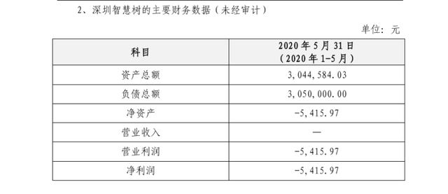 在公告中,常州曾伟商务交流服务有限公司科技披露了深圳智慧树的主要财务数据(未经审计),如下图所示。